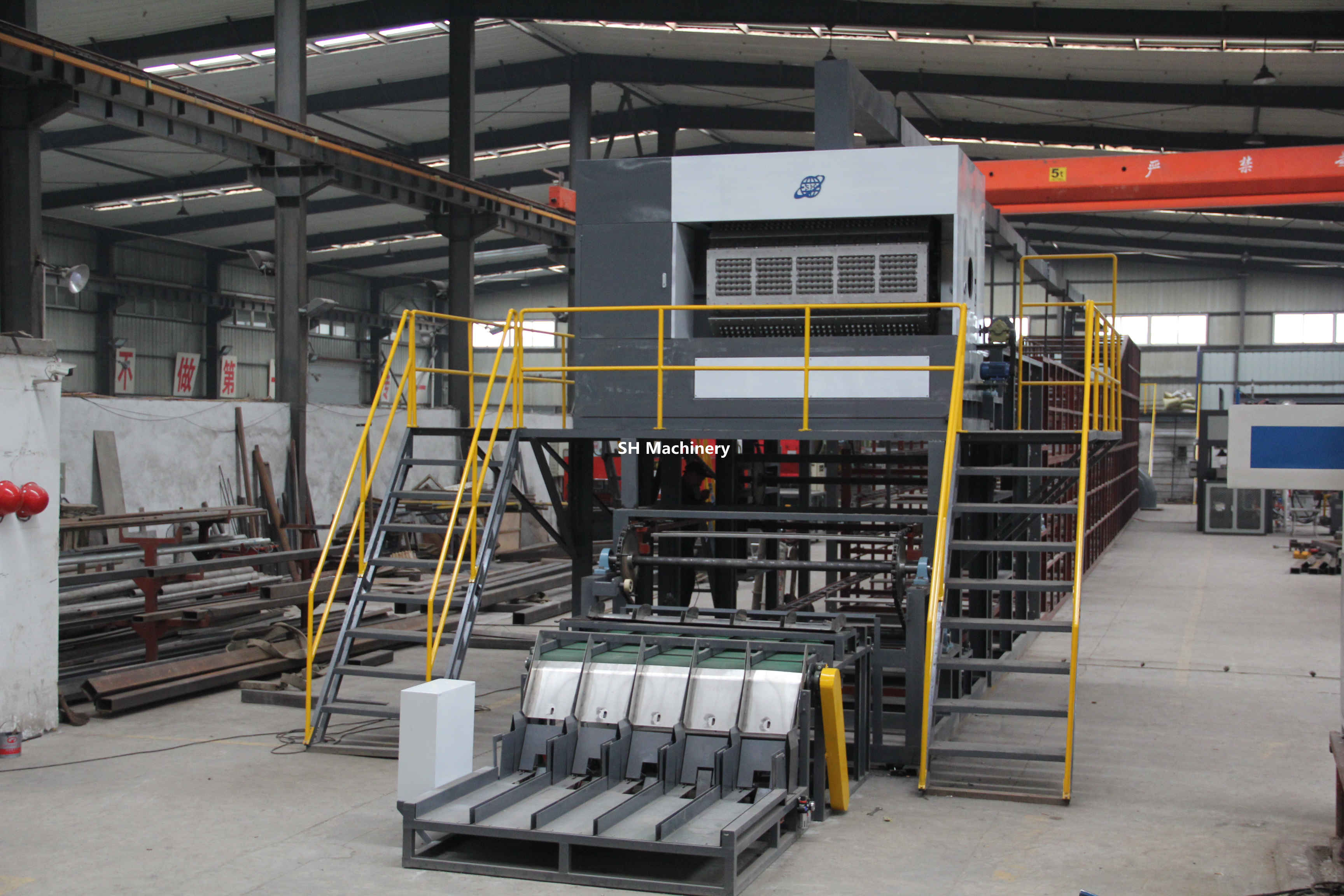 加納6000片每小時(shí)蛋托生產(chǎn)線多層金屬烘干線設(shè)備全貌